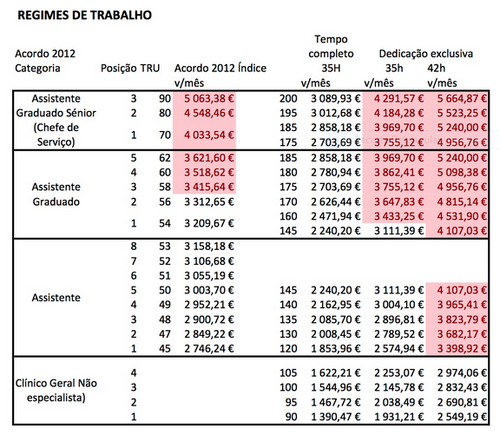 Parasito a adenda do Pedro Pita Barros: "a tabela salarial toda, tendo a vermelho os casos em que o salário recebido é superior, depois de somados os encargos sociais, ao valor de 4230 pago por médico cubano."(...) "(falta acrescentar valores de alojamento e viagem a Cuba para os médicos cubanos e perceber o âmbito de aplicação de um subsídio adicional mensal clínica geral*)".