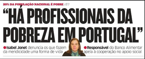 Ou será que é uma projecção? É que se alguém faz "da mendicidade uma forma de vida" é a própria. Não que me admire das barbaridades e das incongruência da Isabel Jonet, mas não deixo de me ofender.