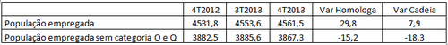 O ponto fundamental é que, sem o emprego público, não teria havido criação de emprego total - em cadeia -, ou ela teria sido residual, em termos homólogos. Concretamente, sem a contribuição do setor O (Administração Pública, Defesa e Segurança Social Obrigatória), ninguém se atreveria a falar de "milagre do emprego", pela simples razão que sem este setor, o crescimento do emprego total teria sido negativo na variação em cadeia, e residual na variação homóloga (cerca de 5 mil empregos).