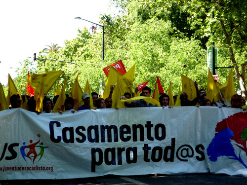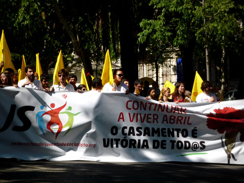 Mulheres em marcha na Avenida da Liberdade em Lisboa, 25 de Abril de 2010