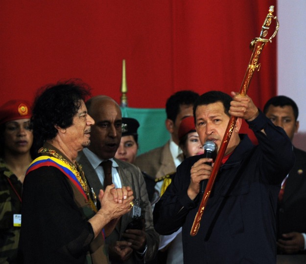 Respondendo às angústias dos muitos que se interrogavam sobre a posição de Hugo Chávez em relação aos acontecimentos na Líbia, na sexta feira o ministro venezuelano dos Negócios estrangeiros, Nicolas Maduro, reagiu em apoio do ditador líbio, ecoando a posição de Fidel Castro (e Daniel Ortega), reiterada numa coluna recente. Ou seja, para o governo da Venezuela o massacre da população líbia não passa de uma conspiração ocidental para invadir o país. No Twitter, Chávez deixou bem clara a sua visão dos acontecimentos e o seu apoio a quem apelidou o Simon Bolivar da Líbia: «Viva Libia y su Independencia! Kadafi enfrenta una guerra civil!!»